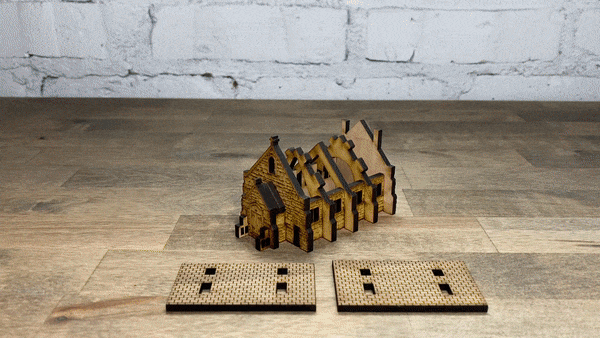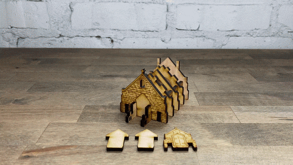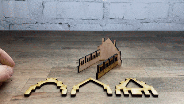 Slide the two Side Wall pieces onto the Rear Wall. Make sure you use the slots shown here. Remember to always face the engraved details towards the outside.