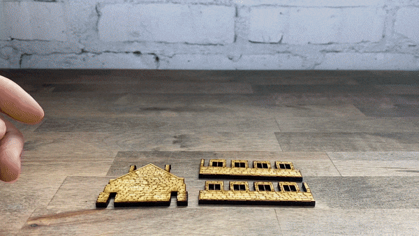 First, slide the two Filler Walls in between the two Porch Walls so they are right up against the Large Front Wall. Then, slide the Small Front Wall into the slots in the Porch Walls.
