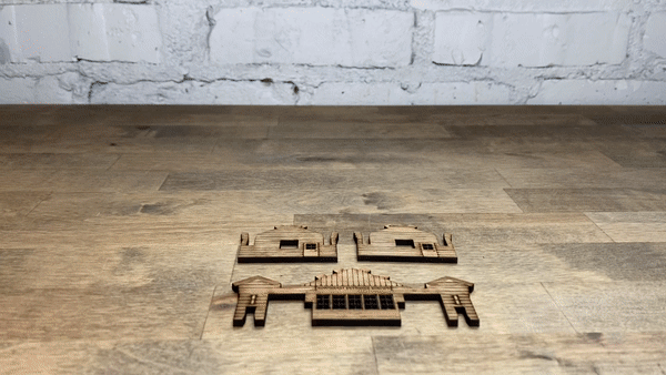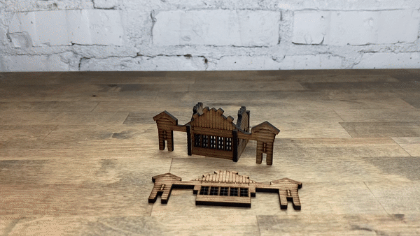 First, slide the two Inner Side Walls onto one of the Front/Rear Walls, on either side of the five windows. Always make sure the engraved details are facing out. The pieces might feel loose for now.