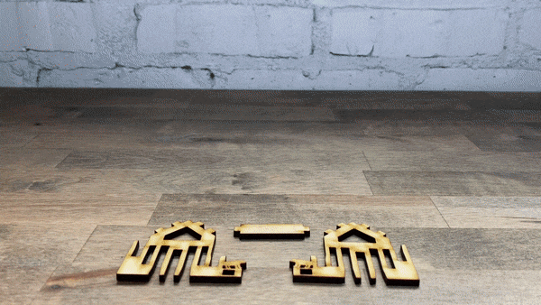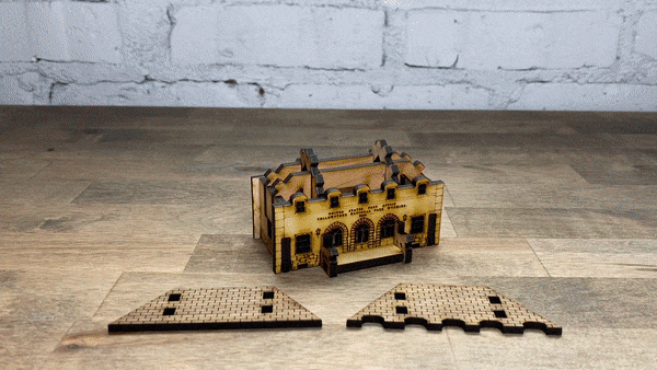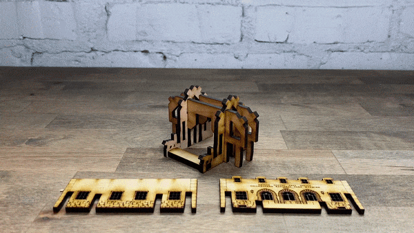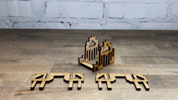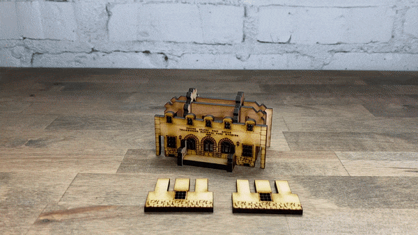 First, insert the Front Step into each of the Bear Statue Walls. Always make sure the engraved details are facing out.