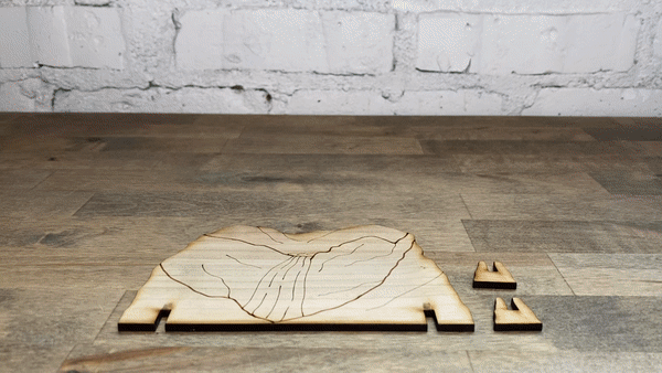 First, place the Old Faithful Front piece on top of the larger Old Faithful Geyser piece. Then slide the two Old Faithful Supports up into the slots.
