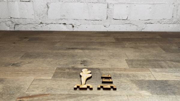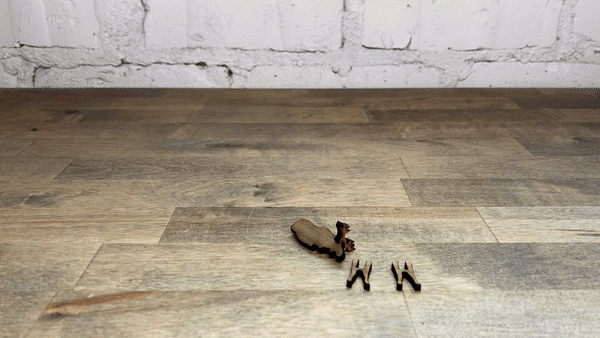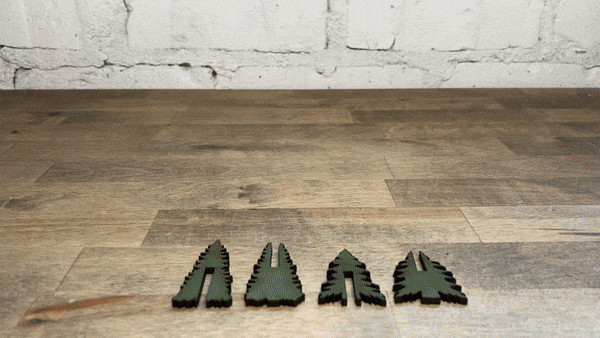 Slide the Large Tree Top piece onto the Large Tree Bottom piece. Then do the same with the small tree pieces. You will have six large trees and five small trees. Be gentle with the outer branches of the trees.