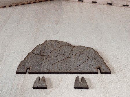 For each backdrop (El Capitan and Half Dome), slide two Backdrop Stands into the slots. These backdrop stands are the only pieces you’ll have to take apart when you put your village back in the storage box.